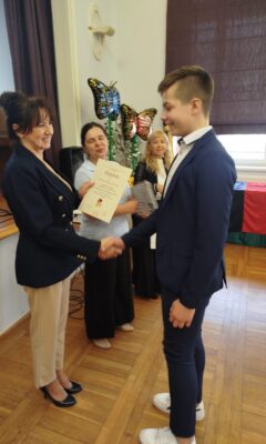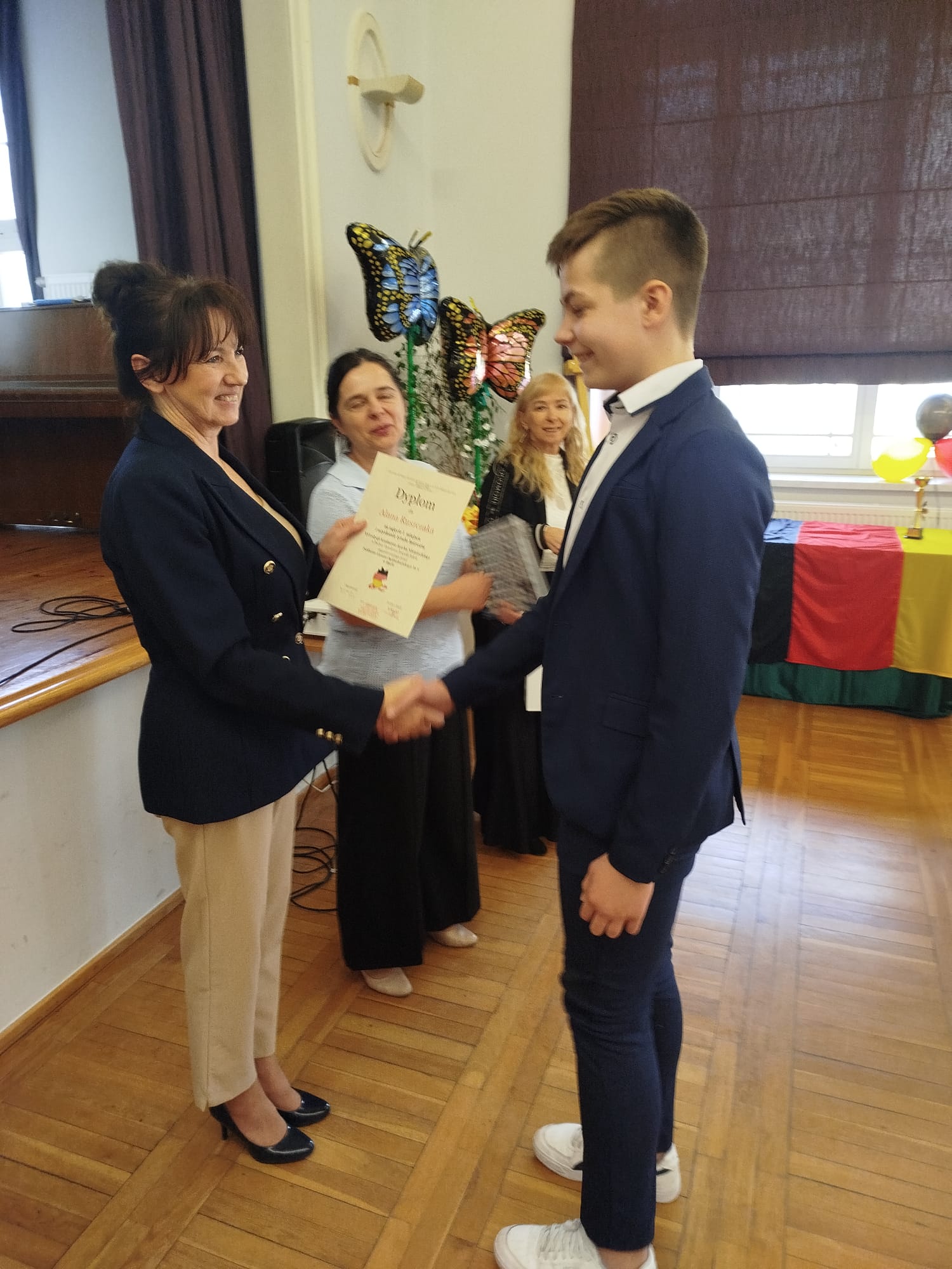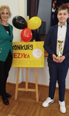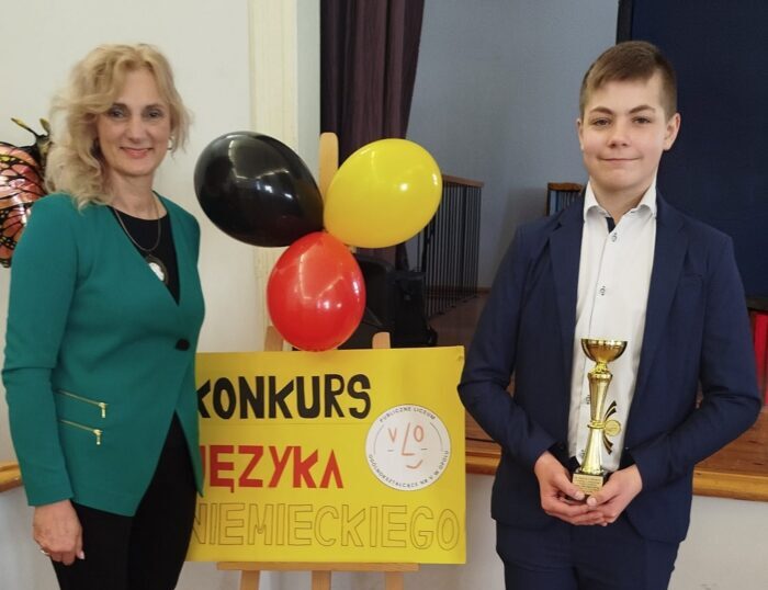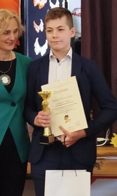 Sięgnął po I miejsce oraz zasłużony Puchar Dyrektora V LO. Jury było pod wrażeniem nie tylko biegłości językowej, ale i imponującej wiedzy Alana o krajach niemieckojęzycznych. To kolejny dowód na to, że pasja wsparta systematyczną pracą to przepis na sukces, który powtarza się raz za razem!